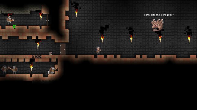 Players are tasked with creating their own character from several different classes, then setting out to dig their way down to a colossal, sprawling dungeon, battling through its randomly-generated halls using randomly-generated tools, striving to survive and thrive despite the difficult odds. If players wish to live long in this world, they may also wish to make a few return trips to their base to regroup and fashion some helpful things that will help them return to fight refreshed and rearmed.
