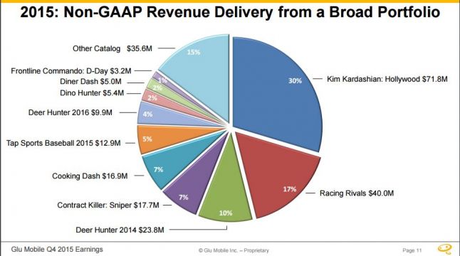 But that’s a bit of a rallying effort for Glu, given that its 2015 earnings report shows a decline in both revenue and profits for the last three months of the year. Speaking to investors, de Masi attributed this in large part to a smorgasbord of missteps that led games like James Bond: World of Espionage and Katy Perry: Pop to significantly underperform.